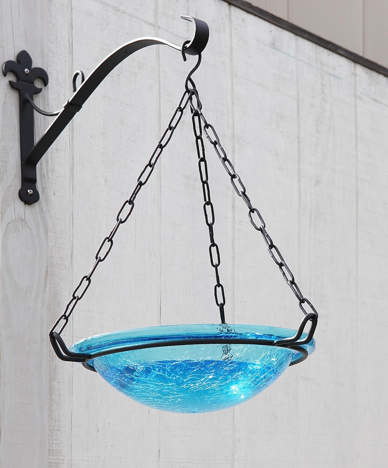 Reflective and brilliant, our Crackled Glass Birdbath Bowls are sparkling gems in the garden. Bowls are made from hand-blown glass in five vibrant colors, measuring 12 ½” diameter x 2 ½”D. Available for purchase alone, or with our wrought iron Birdbath Hanging Ring or Cradle and Garden Stake, these colorful birdbaths create a bright pop anywhere in the garden. Birds will enjoy a safe place to cool off and drink some water, and gardeners will love having this beautiful piece to accent the plantings. These bowls are also designed to fit our wrought iron bases the Short Stand (GBS-22)and Ring Stand (FB-14) for table top or garden. Makers of fine quality goods for the home and garden since 1994, we offer a full line of Achla Designs wrought iron landscape structures, plant supports and stands, birdbaths and other decorative garden elements for the patio, porch, deck and yard.