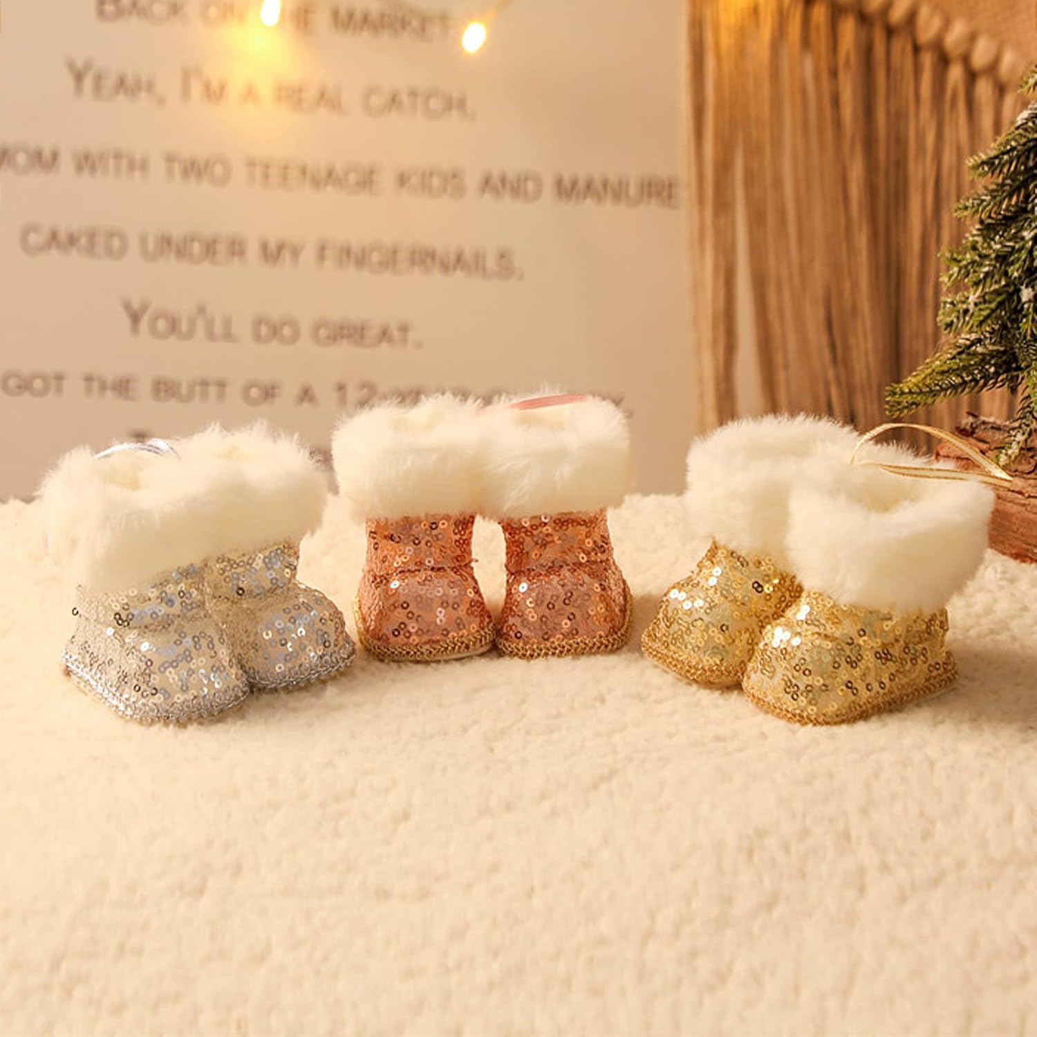 Features1. WILDLY APPLICATION: Christmas Boots can not only be used to dress up Christmas trees with your children to have fun in your home, but also an ideal choice for store for Christmas theme or school activities for decoration.2. EASY TO STORE & USE: The tops of each Christmas Hanging Boots has a hanging rope, which can help you hang them easily. After using, you just need to clean the plush and store them in a bag. They can be using for several years.3. HIGH QUALITY MATERIAL: These Christmas Boots are made of premium matieral which means that they are hard enough so that they won't be damaged during shipping process or your using time.SpecificationMaterial: Chemical Fiber Cloth + PlasticColor: Silvery, Pink, GoldSize: 3.7x3x2.8 inchPackage Include:3 Pair of Santa Boots Decor