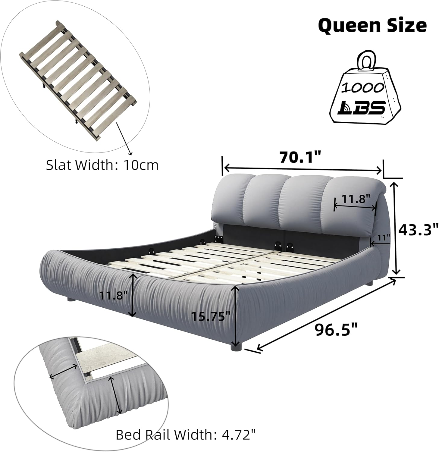 Indulge in the ultimate sleep sanctuary with our King Size Cloud Bed Frame. Designed for those who refuse to compromise between luxury and comfort, this bed transforms your master bedroom into a haven of relaxation. Sink into Cloud-Like Comfort Experience the blissful softness of our premium chenille upholstery, which wraps the oversized, adjustable headboard and entire fully upholstered bed frame. The generous, padded headrest is your perfect companion for late-night reading or binge-watching your favorite shows, offering unparalleled support for your back and neck. Engineered for Unshakable Stability Beneath the plush surface lies a fortress of strength. The solid pine wood slats, reinforced with a sturdy iron frame, work in unison to provide silent, robust support with a remarkable 1000 lbs weight capacity. The closely spaced slats (approx. 5cm apart) eliminate the need for a box spring and ensure your memory foam, latex, or hybrid mattress receives even support, preventing sagging and extending its lifespan. Thoughtful Design for Real Life We've meticulously crafted every detail for your safety and convenience. The rounded corners protect you from painful bumps, while the movable headboard allows couples to customize their side independently. Its streamlined profile and neutral beige/white color seamlessly blend with any modern, contemporary, or minimalist bedroom decor. Invest in more than just a bedโinvest in countless nights of restorative sleep and timeless style.