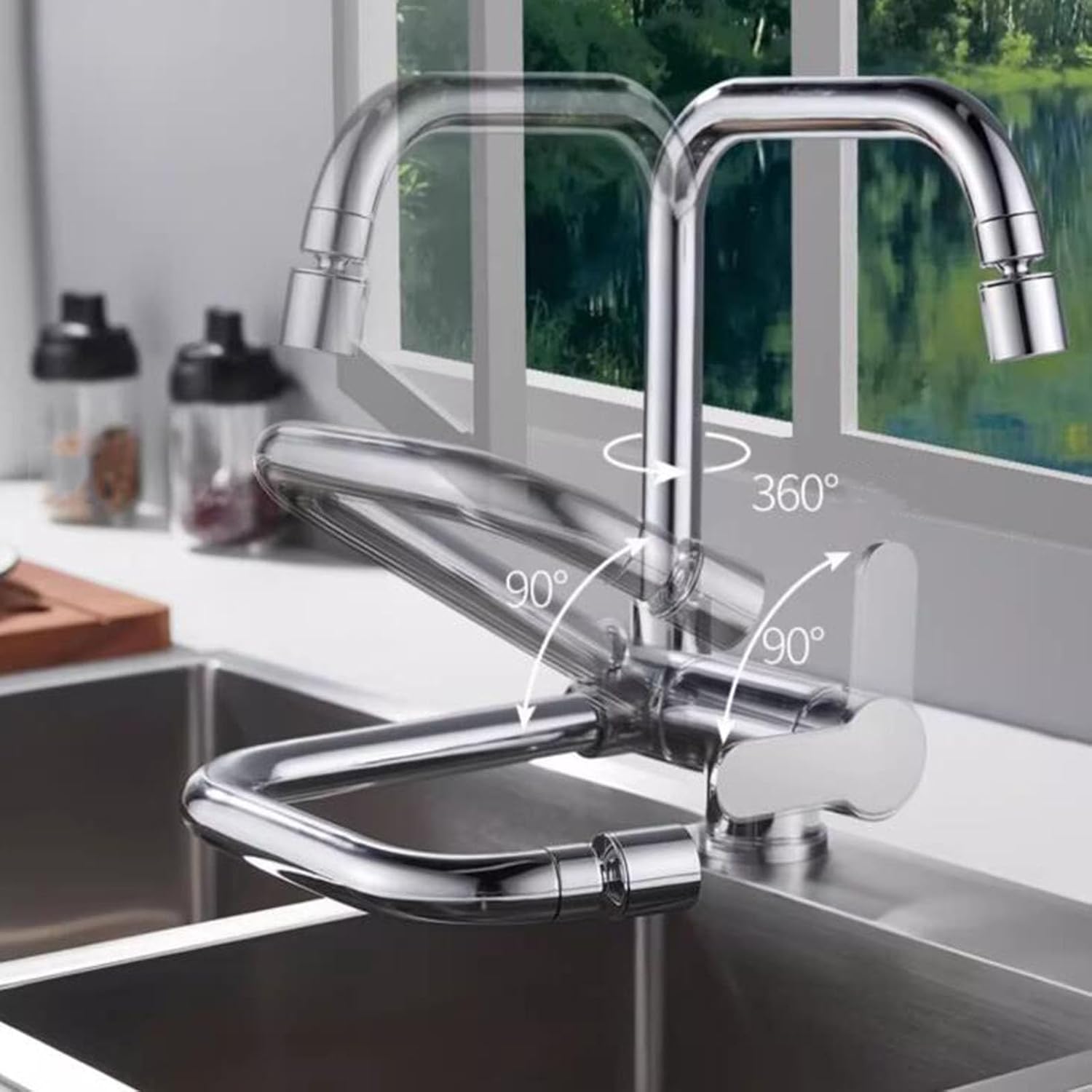 Kitchen Faucets Folding Inside Window Swivel 2 Modes Nozzle Brass Sink Mixer Faucet-Chrome