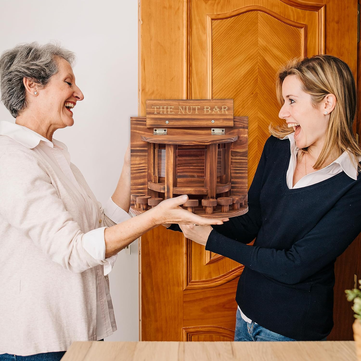 MIXUMON Crescent Squirrel Feeder Table, Wooden Squirrel Picnic Table Feeder, Outside Squirrel Feeders Corn Cob, with Solid Structure, Stable Squirrels Stool Bar, 12.6 x 13.3 x 6.7 Inches