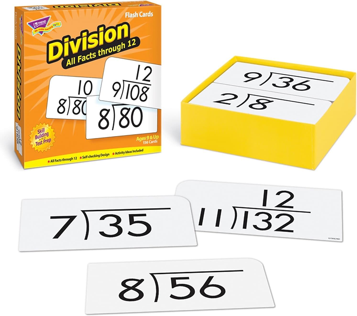 Learning facts is easier with complete division tables for 0-12. Great for test prep and review. Self-checking, with answers on card backs. Sturdy cards and storage box. 156 cards. 3" x 6" no-see-through cards with quick-sorting, rounded corners.