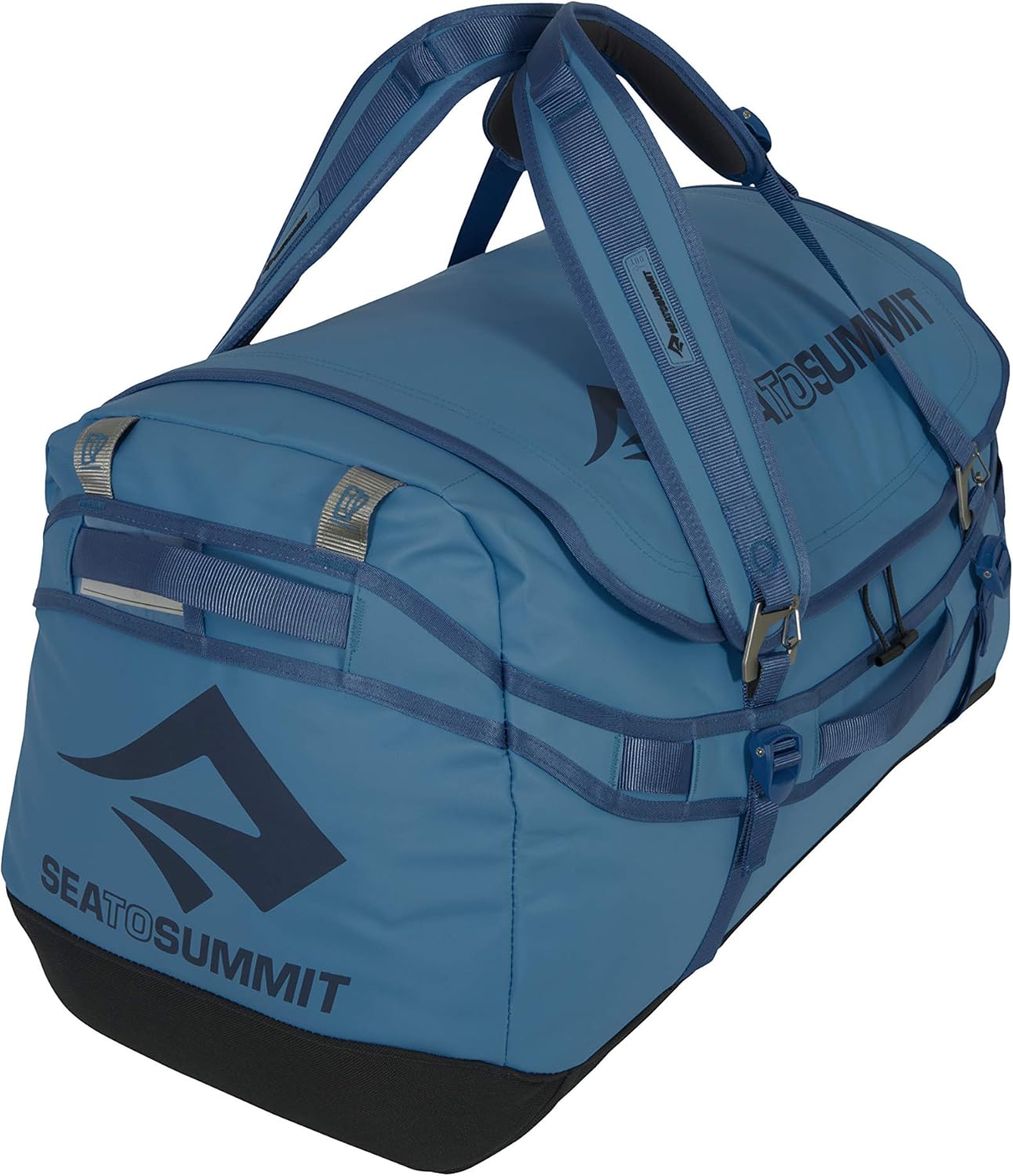 The Sea to Summit Expedition Duffle Bag with Backpack Straps is a rugged, load-hauling duffle bag backpack for rough-and-tough expeditions, overlanding adventures, and surviving the urban jungle. Features three carry modes: classic hand grip with magnets to keep straps together, single strap mode, or backpack mode. Straps can also be stowed when checking bags. This ultra-tough travel and gear bag is made from waterproof tarpaulin laminate, with a super-durable 1000D nylon base, and a theft-resistant double-toothed zipper. Steel gated hooks manage the straps. A padded lid opens extra wide for easy packing, and there is a large internal zipper pocket for organization. Lash points make it easy to attach the bag to vehicles or pack animals. The Sea to Summit Expedition Duffle Bag is available in four sizes: 45 Liter bag is carry on size, 65 Liter bag is perfect for a long weekend, 90 Liter bag holds clothes and gear for a longer trip, and the 130 bag has room for everything. Sea to Summit products are guaranteed against defects in materials or workmanship for the lifetime of the product.